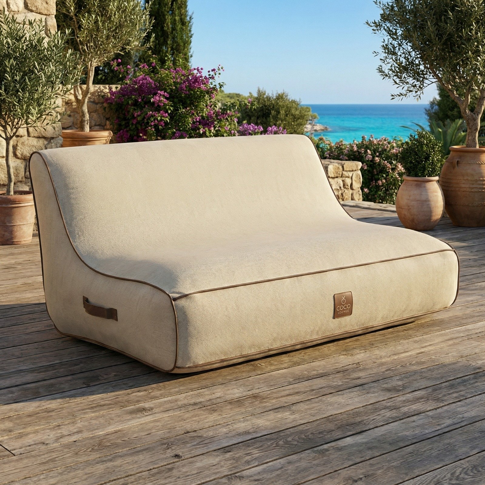 Ce Sofa ne ressemble pas à un gonflable classique. Son aspect capitonné, ses courbes fluides et son textile technique haute densité lui donnent l’allure et le toucher d’un mobilier d’intérieur. Des finitions soignées, une silhouette élégante — il sublime votre extérieur peu importe le type de terrasse ou de jardin